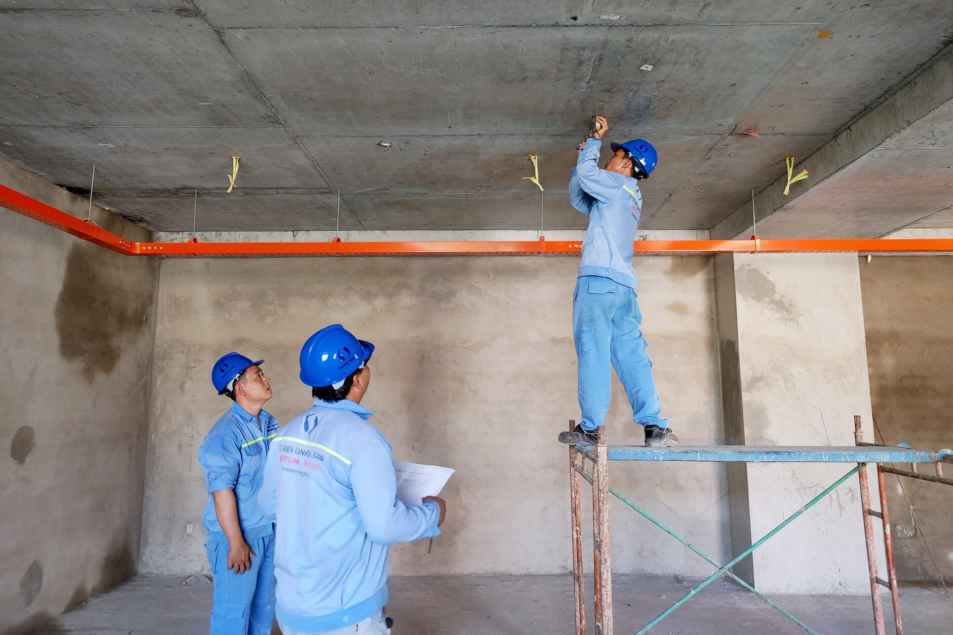 Thực hiện đo đạc, khoang trần, chuẩn bị lắp đặt hệ thống ống gió